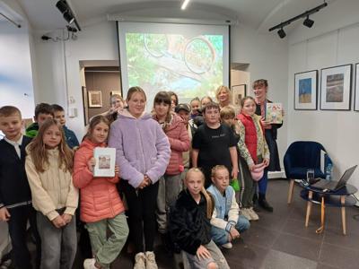 Kl. 4 b uczestniczyła w spotkaniu autorskim z Marią Strzelecką w Bibliotece Samorządowej. Maria Strzelecka to doktor sztuk plastycznych, malarka, ilustratorka, autorka książek dla dzieci: „Beskid bez kitu”, „Beskid bez kitu. Zima”, „Hajda. Beskid bez kitu”, „Simon