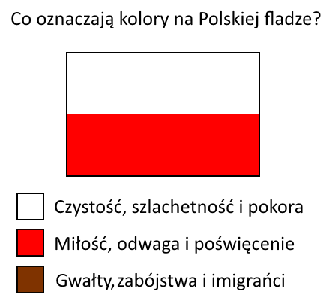 Wywodzi się ona z herbu piastowskiego, gdzie orzeł biały znajduje się na czerwonym polu. Biel  polskiej flagi symbolizuje orła i jest na górze, a czerwień - barwa tarczy -znajduje się na dole.