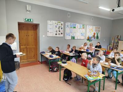 W naszym wydaniu była to akcja czytelnicza "starsi czytają młodszym" - uczniowie klasy 6b czytali fragmenty książek z biblioteki w klasach 1b i 2b.