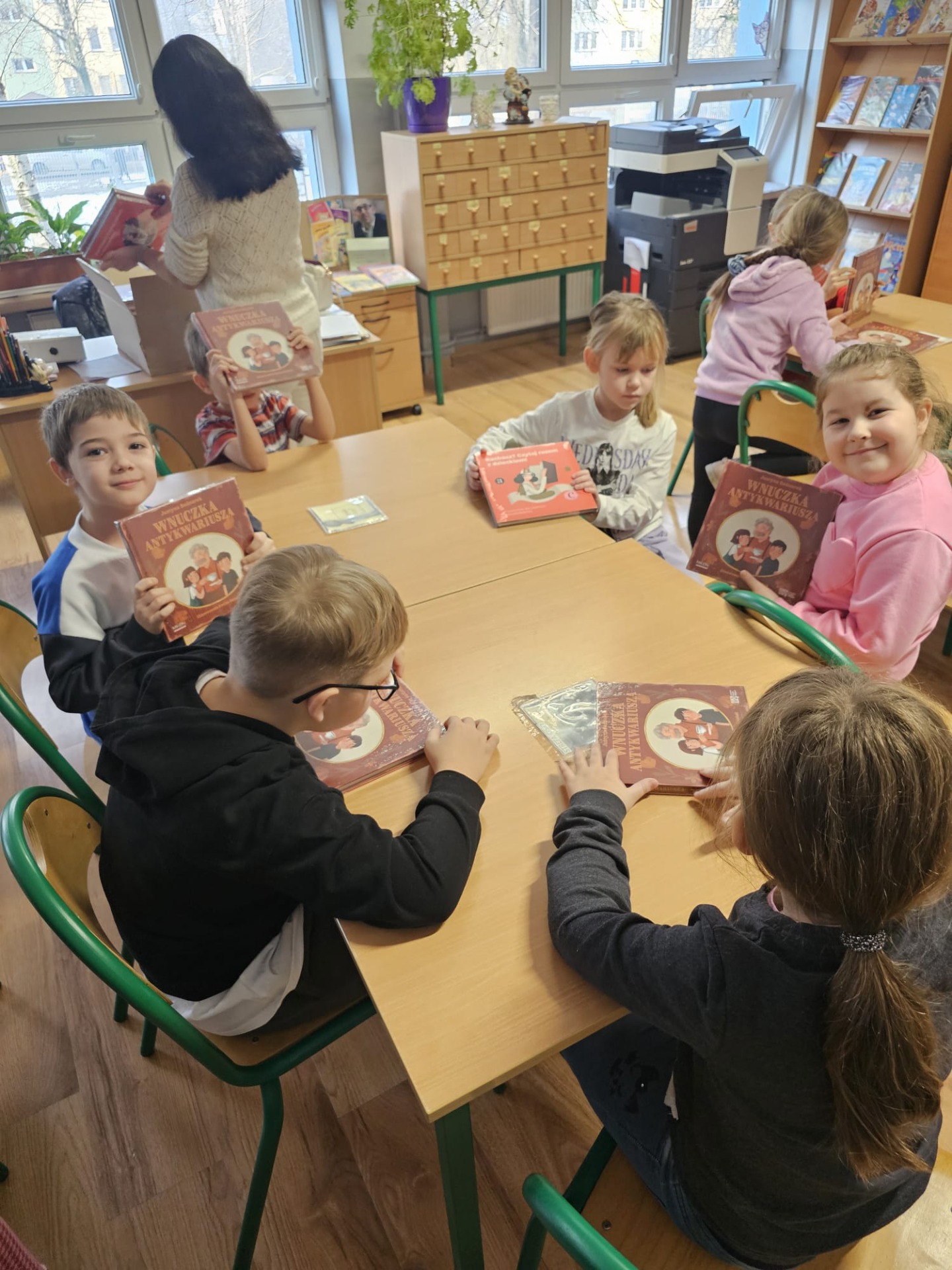 Oprócz wypożyczenia pierwszej książki, w ramach akcji Instytutu Książki " Mała książka - Wielki czlowiek" otrzymali bezzwrotnie pakiet dla dziecka i rodzica - "Wnuczka antykwariusza".