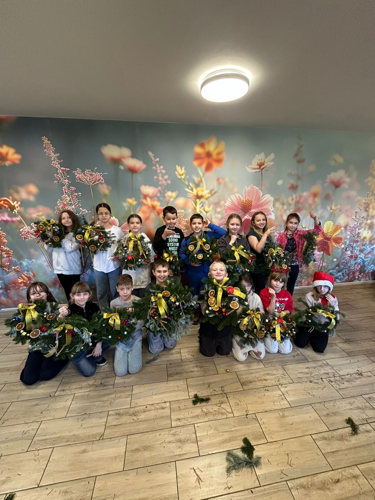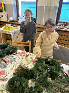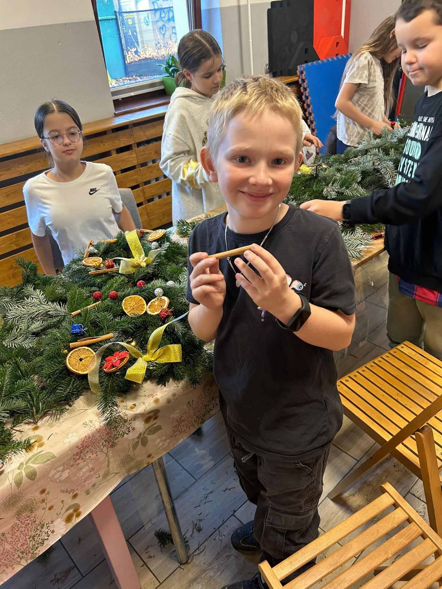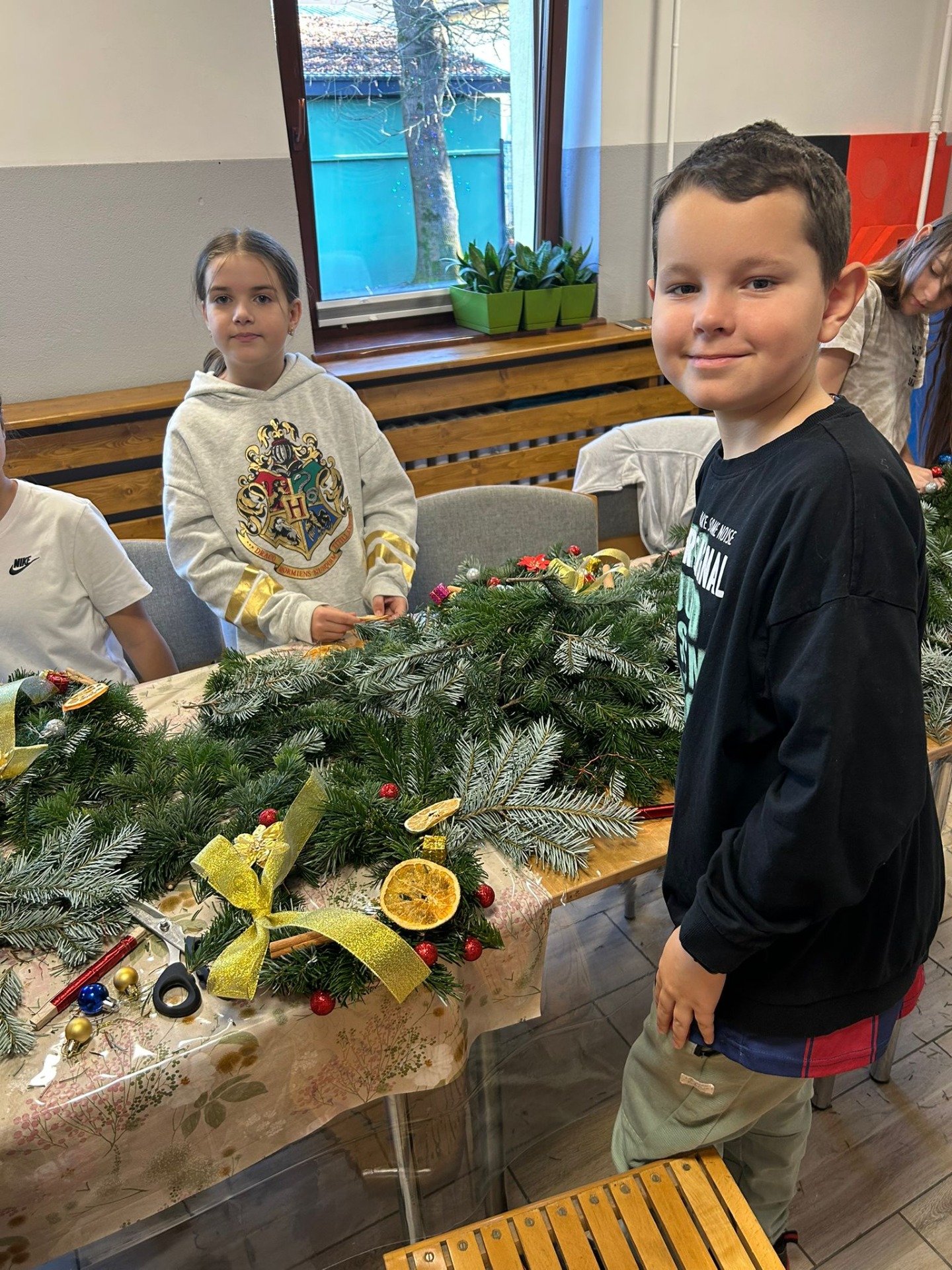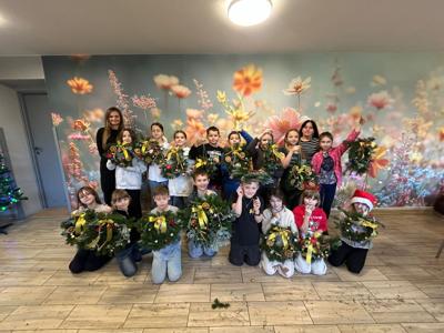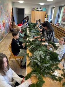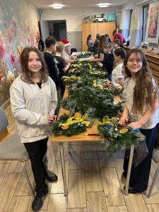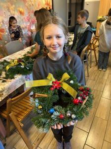 Uczniowie klasy 3a uczestniczyli w warsztatach w Klubie Ogródek, gdzie tworzyliśmy piękne wieńce bożonarodzeniowe na drzwi.