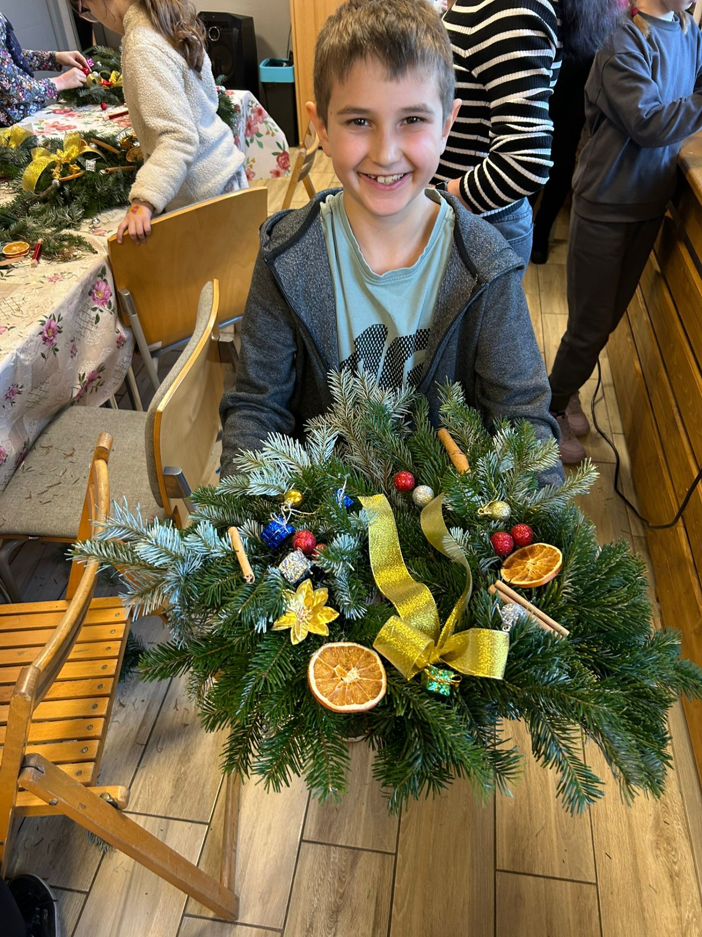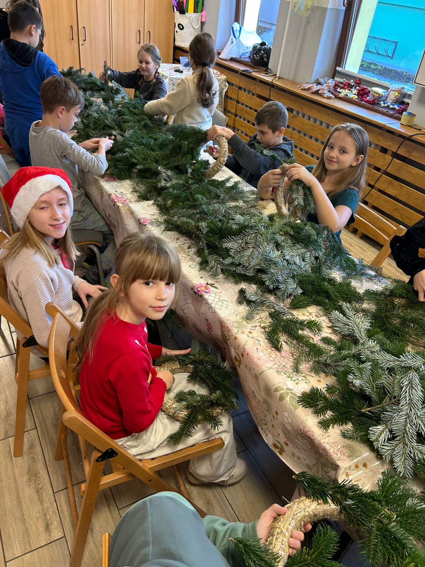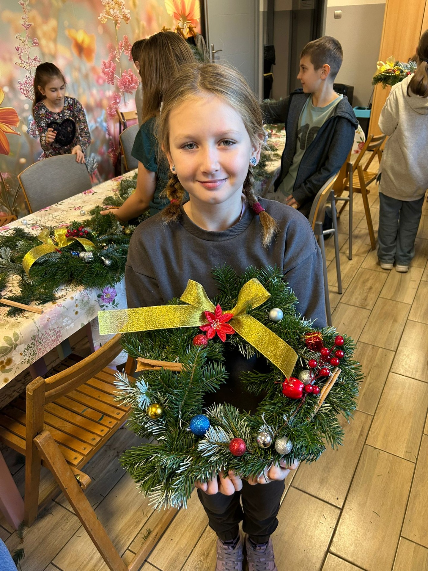 Uczniowie klasy 3a uczestniczyli w warsztatach w Klubie Ogródek, gdzie tworzyliśmy piękne wieńce bożonarodzeniowe na drzwi.