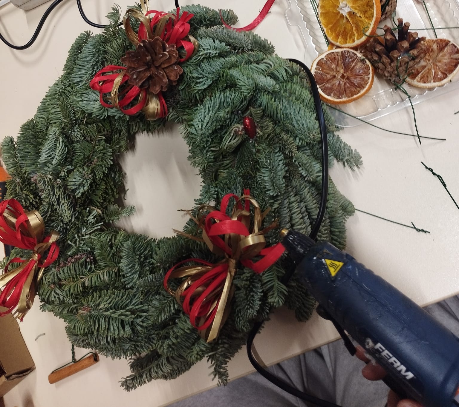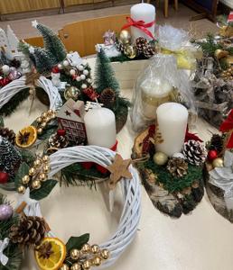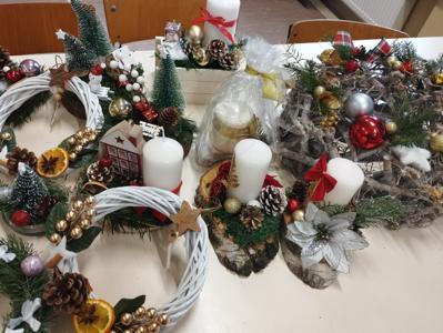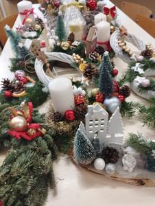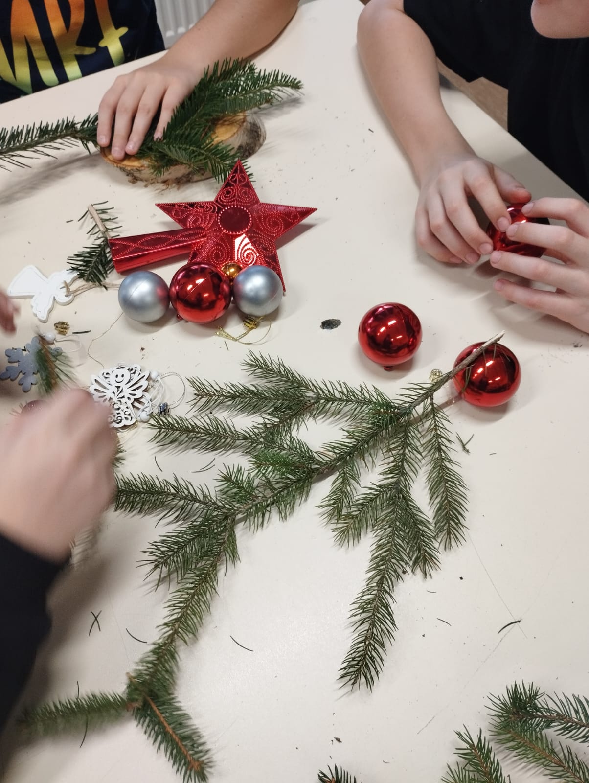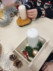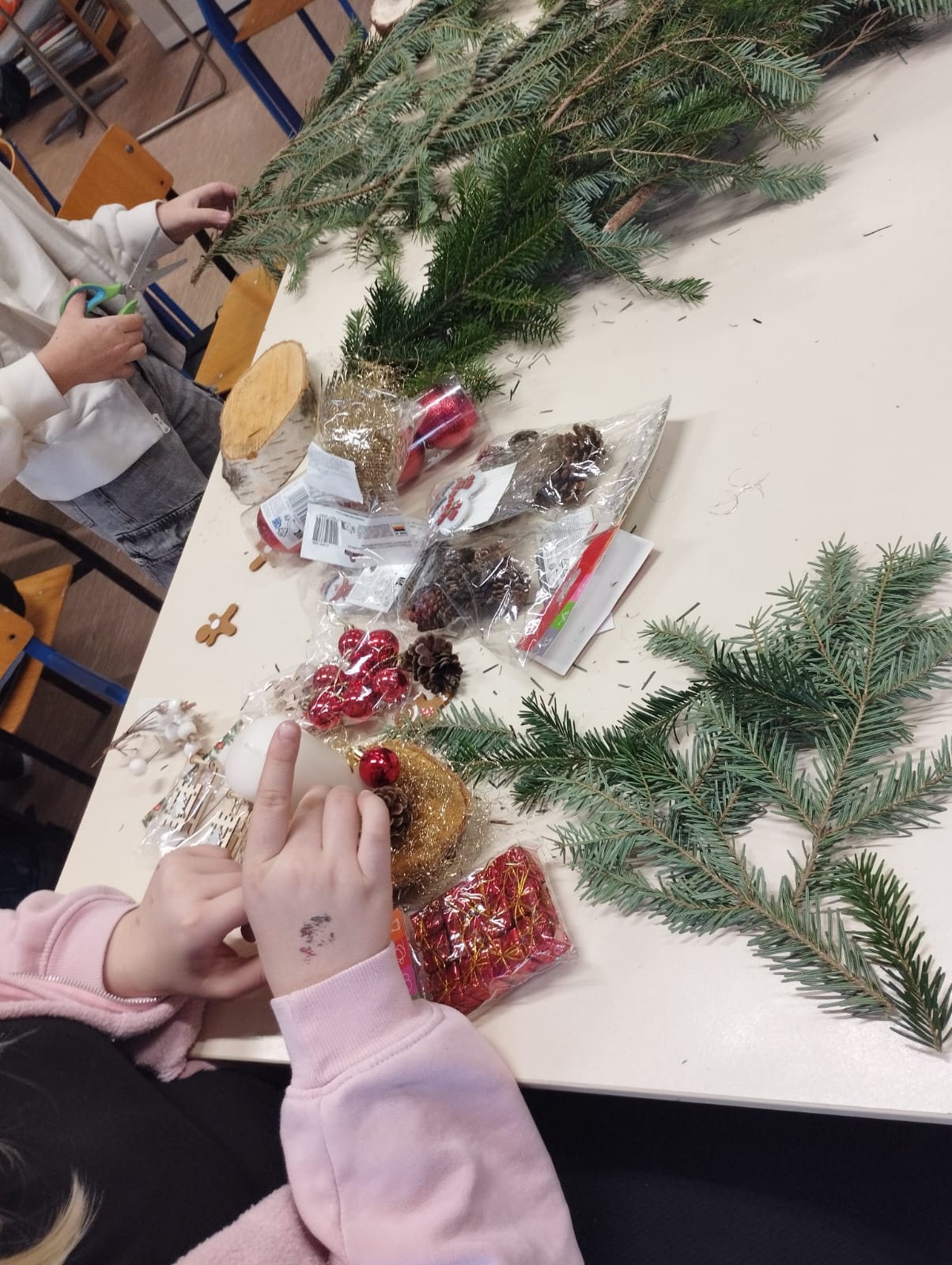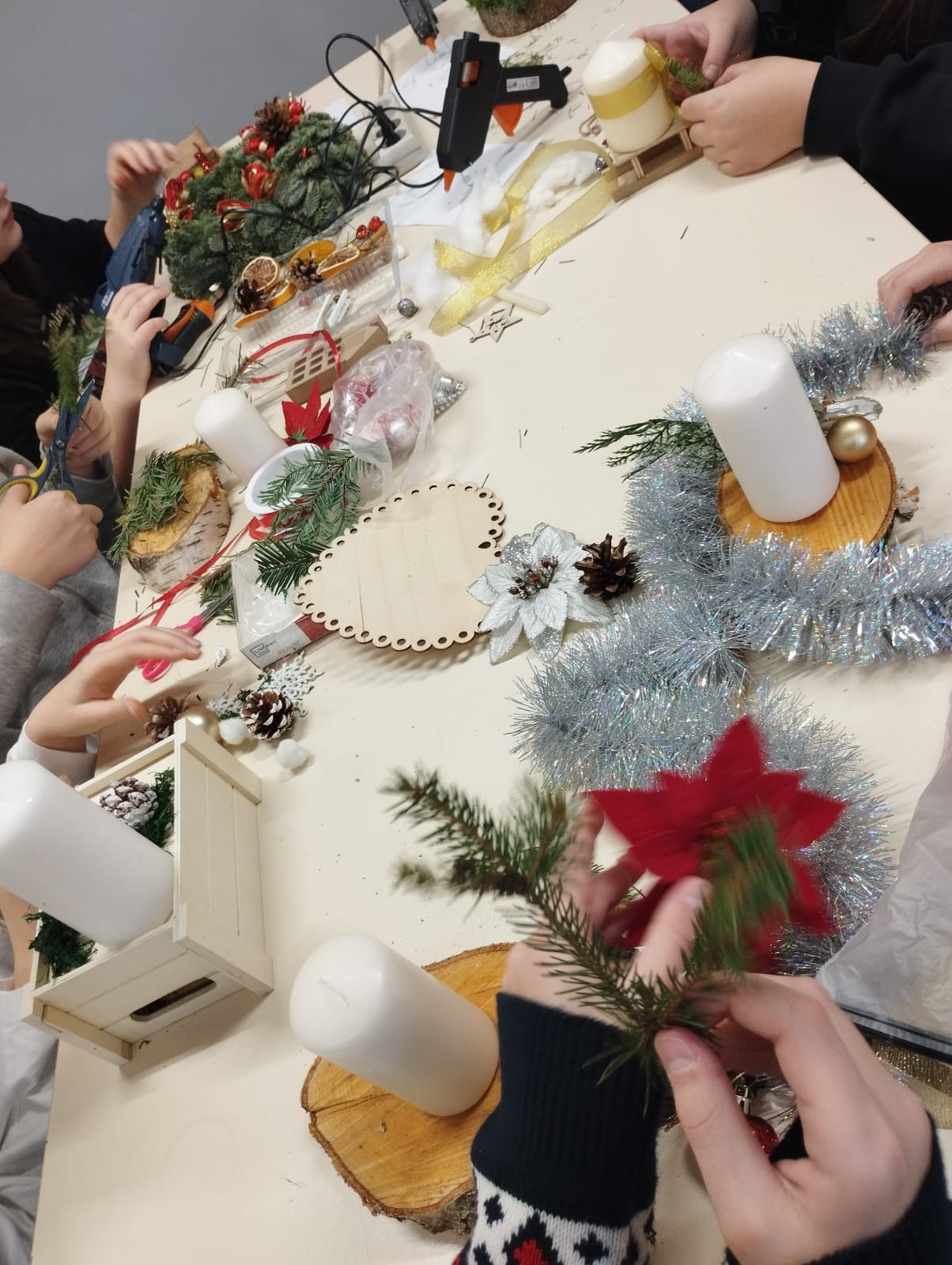 Uczniowie z klas 6b i 8a na zajęciach z plastyki, techniki i geografii wykonali stroiki świąteczne na kiermasz charytatywny w niedzielę przy Katedrze NNMP w Żywcu.